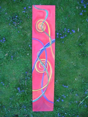 25cm x 122cm Acrylic and pastel on board, framed by a bed of violets.